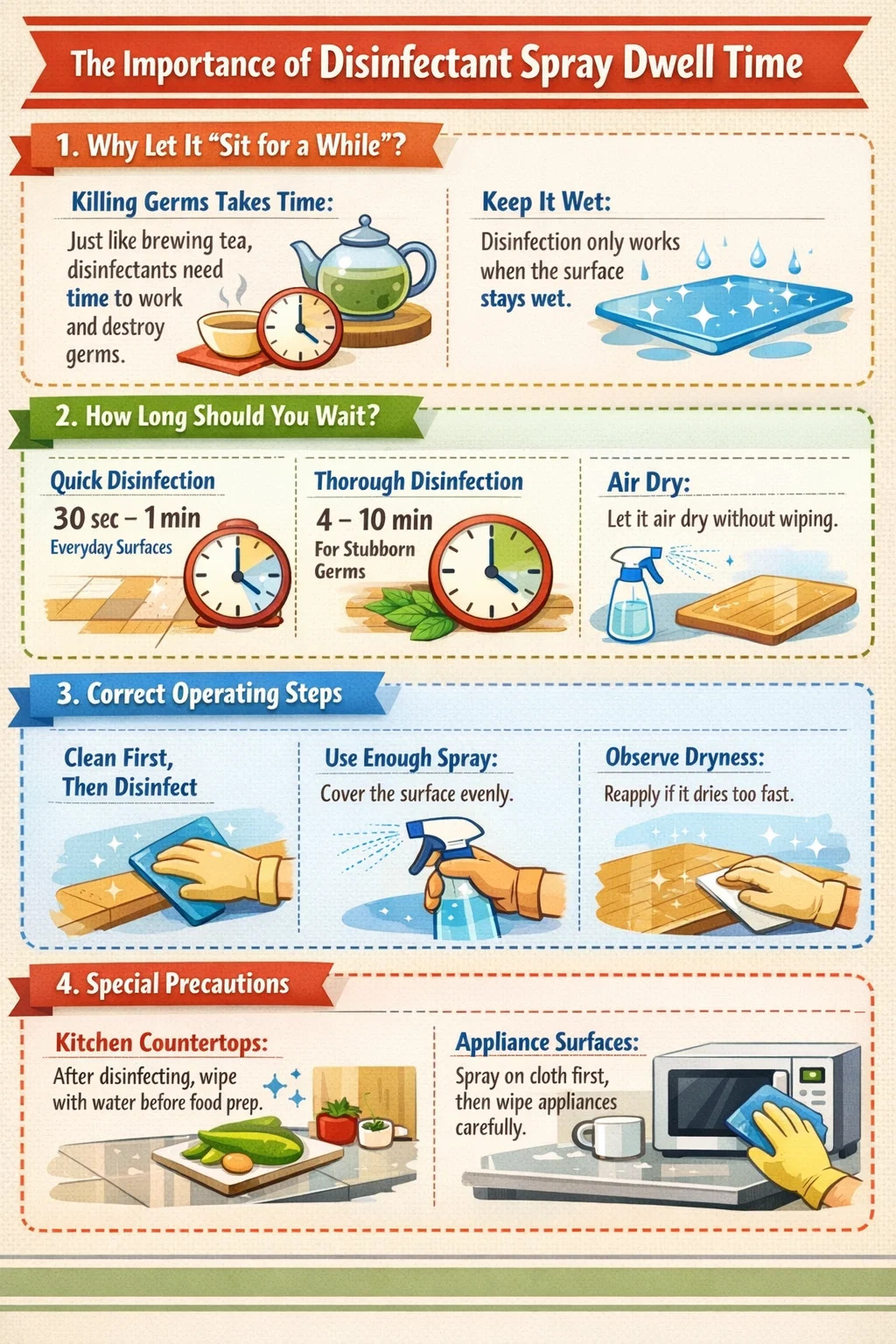 Cum usura disinfectant imbre facillime neglecta ratio est "tempus exspectare." Multi homines statim solent spargere et abstergere, sed hoc solum superficiem purgat et veram disinfection non consequitur.