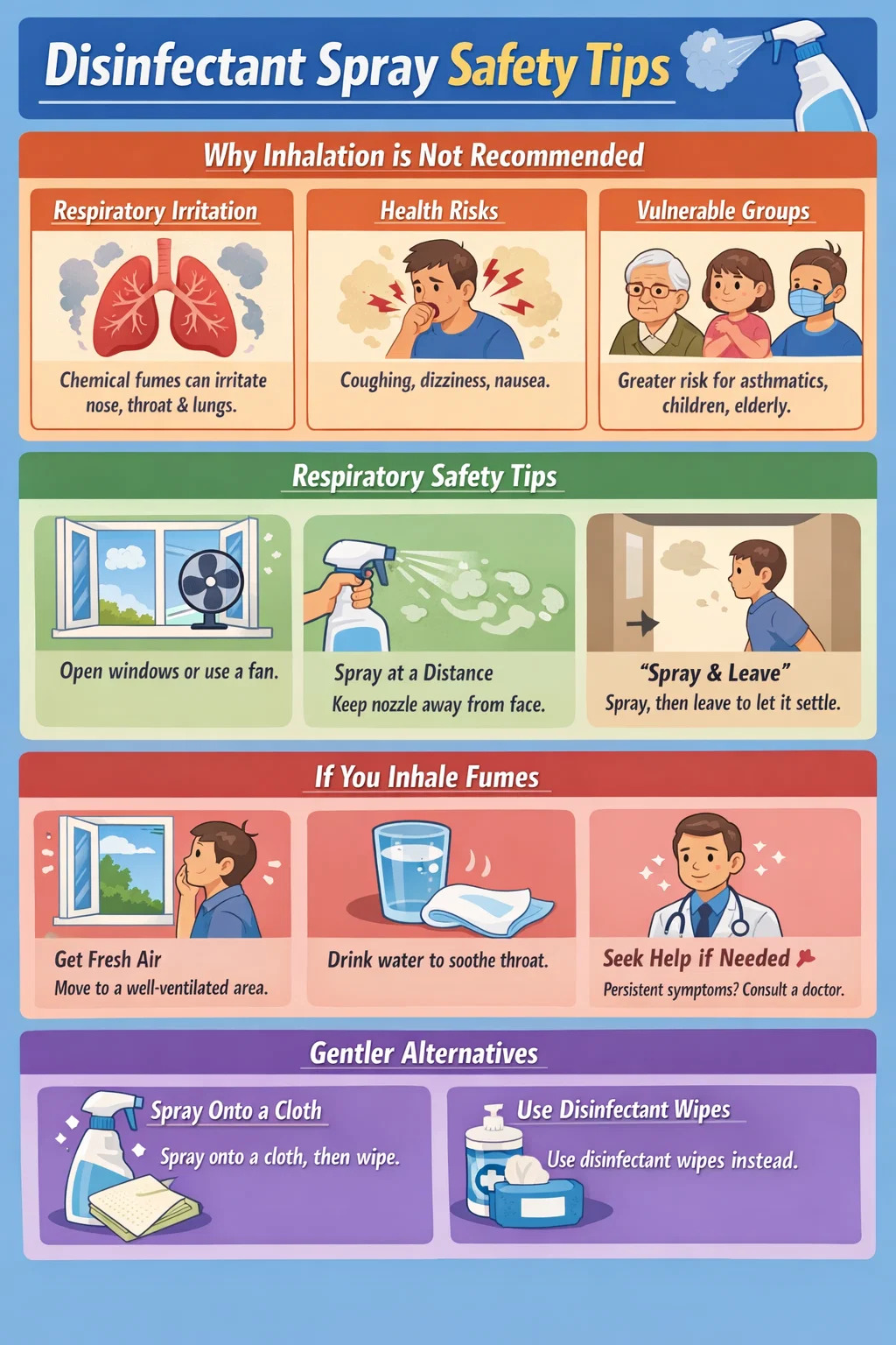 Irritatio respiratoria: Plurimi frondis disinfectantes alcoholem, chlorinum (compositio coloris) vel salia Ammonii quaternaria continent. Dum haec oeconomiae semina necant, possunt etiam membranas mucosas nasi, gutturis et pulmonis irritare.
